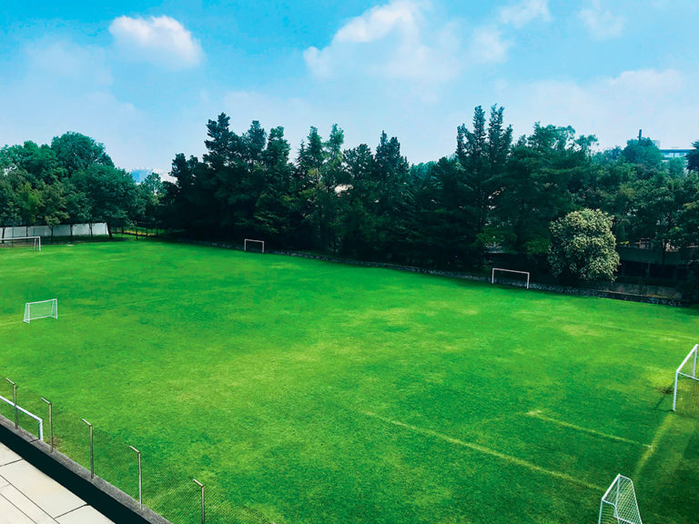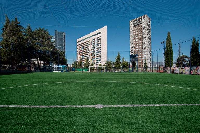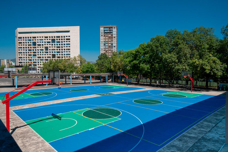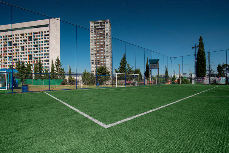 Gimnasio (duela), cancha de fútbol profesional, canchas de fútbol rápido, canchas de voleibol, baloncesto y frontón, salón para ballet, jazz, karate do y amplias áreas verdes.